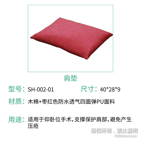 水蜜桃网站APP在线观看海绵久久久水蜜桃国产成人影院之肩垫是用来支撑保护肩部,避免压疮的产生,一般用于仰卧位手术,选用枣红色四面弹防水面料,与皮肤接触有良好的依从性,内里填充木棉,软硬舒适,根据不同使用用途有多个尺寸。