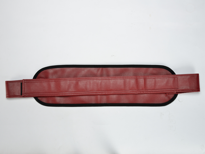 【产品材质】:枣红色防水透气四面弹PU面料、魔术贴