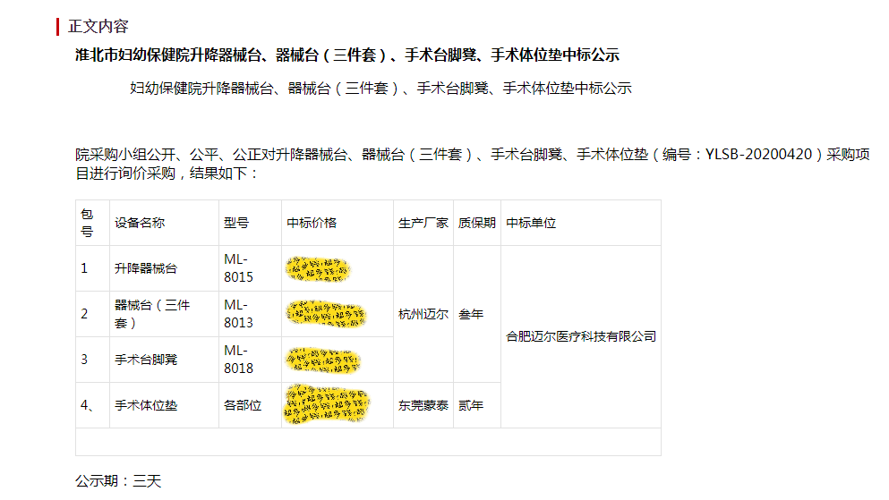 淮北市妇幼保健院手术久久久水蜜桃国产成人影院中标后进院清单