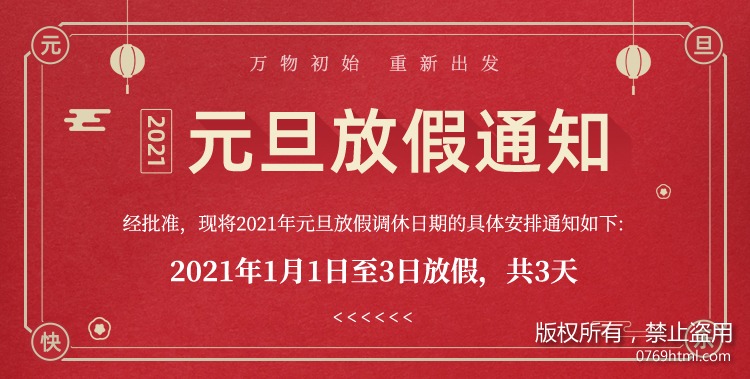 2021年1月1日至2021年1月3日,共计3天,2021年1月4日正常上班,放假期间,望各位出行注意防护以及保暖哦!